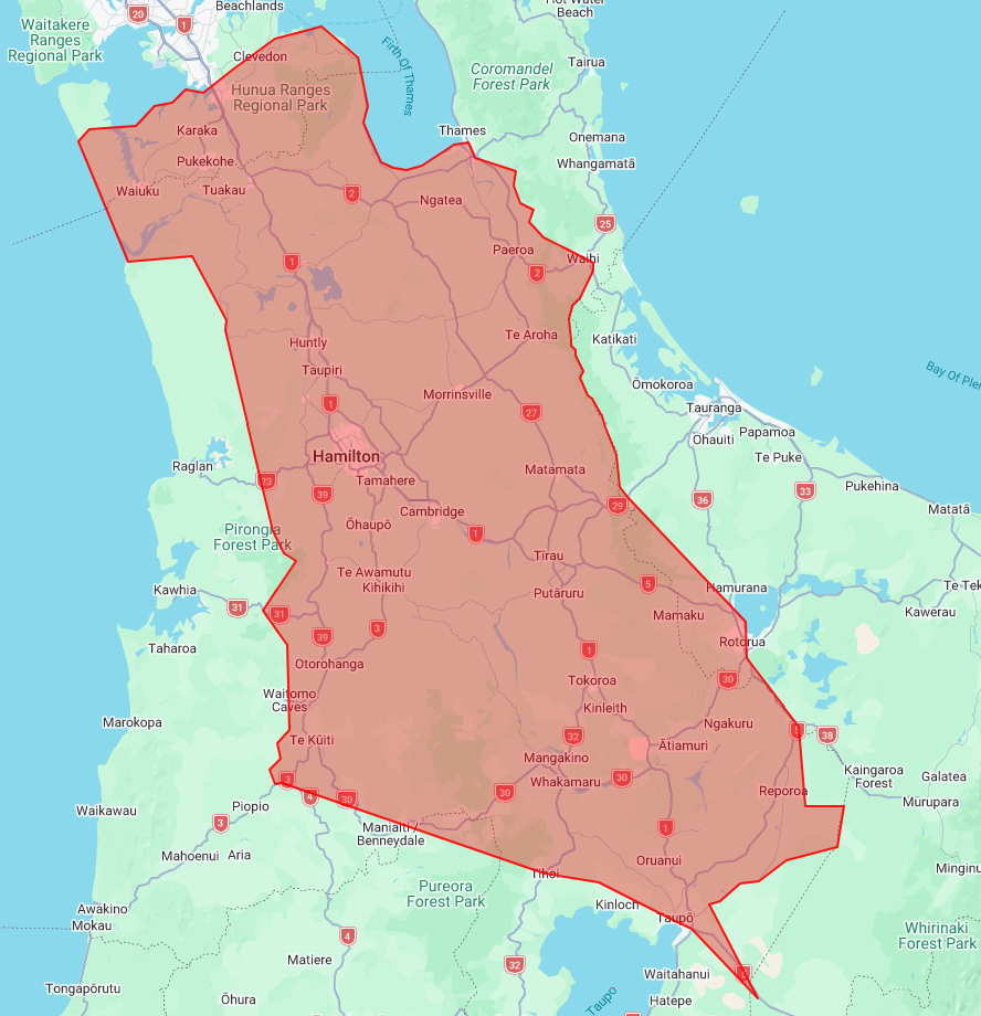 the red area below. The area enclosed by the shaded red area indicates where we now collect